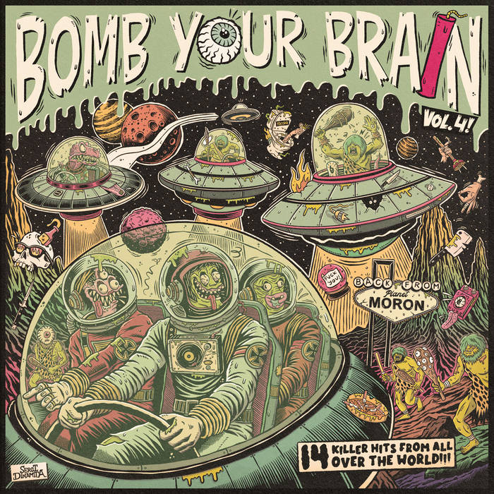 «BOMB YOUR BRAIN COMPILATION VOL.4 – BACK FROM PLANET MORON» regroupant la fine fleur du Garage Punk mondial avec en Vrac The Smoggers, King Salami and the Cumberland 3, Bart and the Brats, Mammoüth , Tuesday Violence et tout plein d’autres nouveautés Musicales !!!!! A noté une nouvelle fois l’artwork de Genie par Mister Sergi Dinamita himself!!!